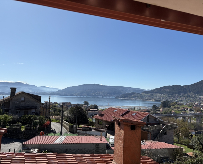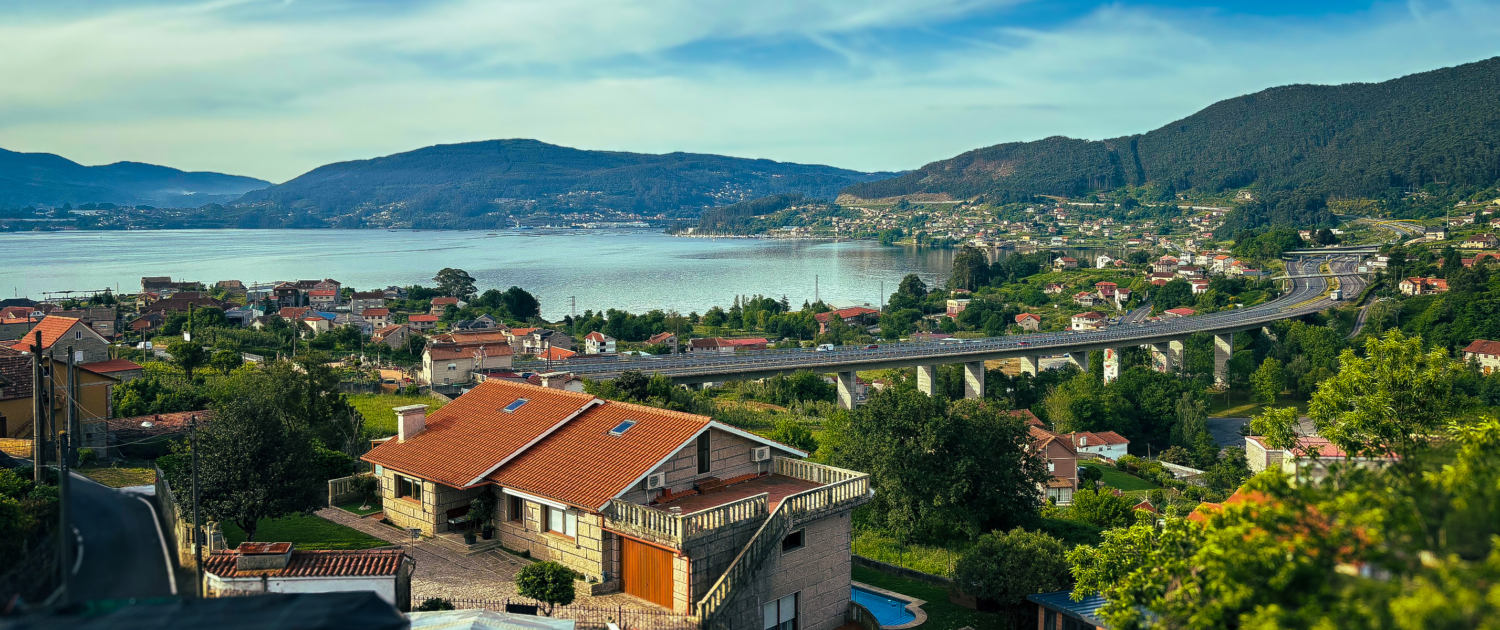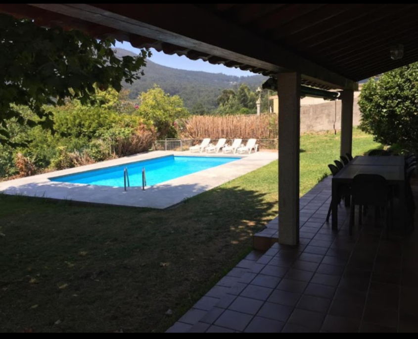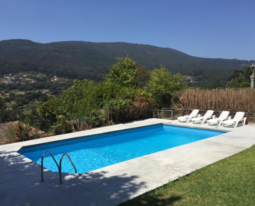 El alojamiento cuenta con piscina, barbacoa, una amplia terraza y un jardín con preciosas vistas a la ría de Vigo